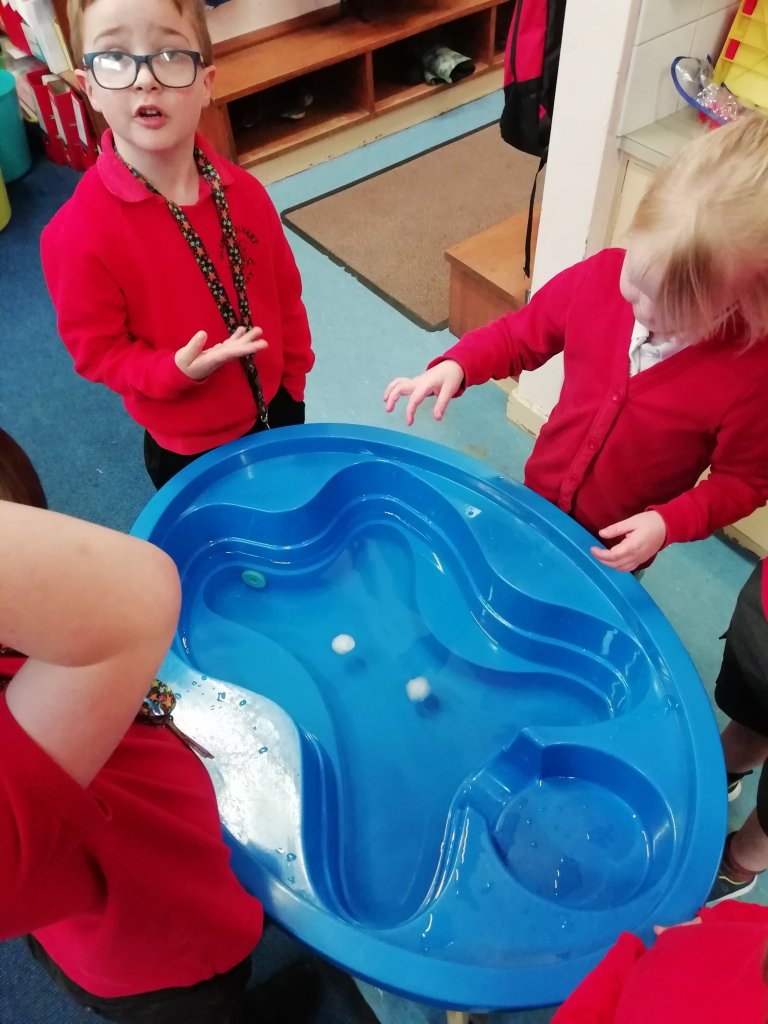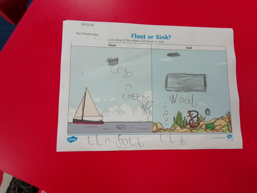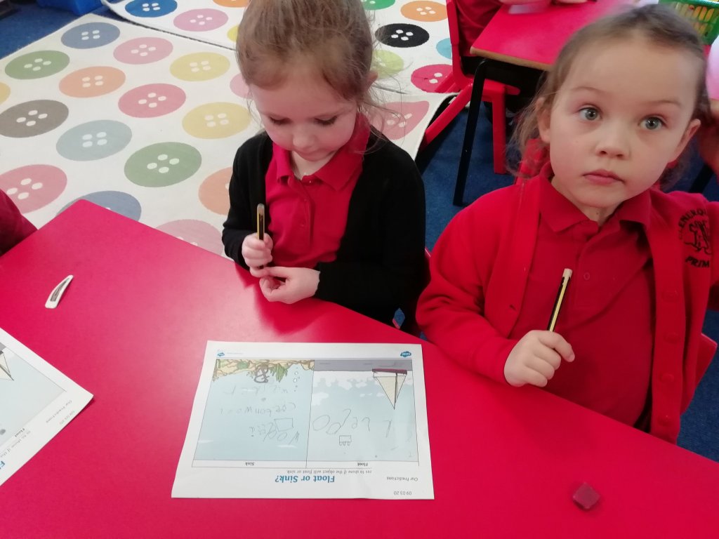 As part of Science Week P1/2 have been investigating floating and sinking. We have been learning about prediction and we had to guess what we thought would happen before we carried out our experiments.